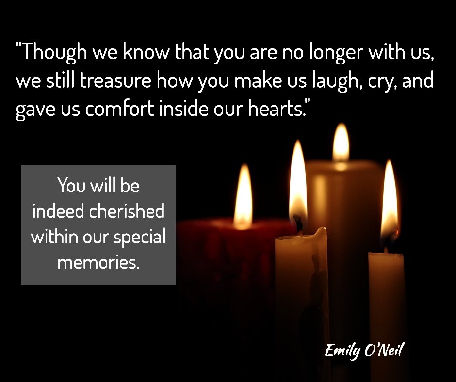 Through wise advice, joyous times and sorrowful pains, you will be indeed cherished within our special memories.