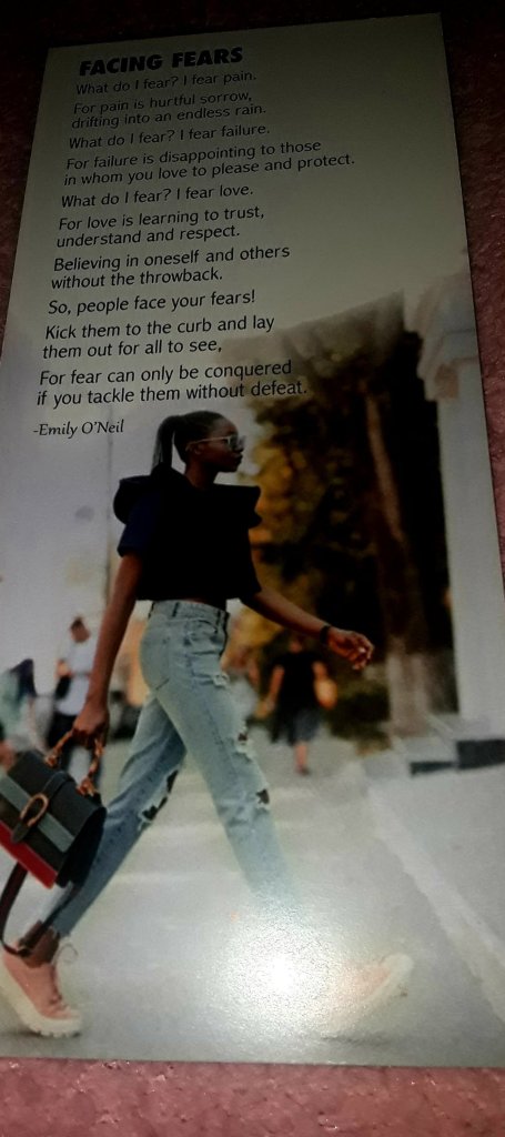Empowerment FACING FEARS POEM PAGE #58 Date: May 17, 2021Author: eo2inspire 0 Comments https://eo2inspire.wordpress.com/2021/05/17/facing-fears-poem-page-58/ Share this:Like Loading... Related